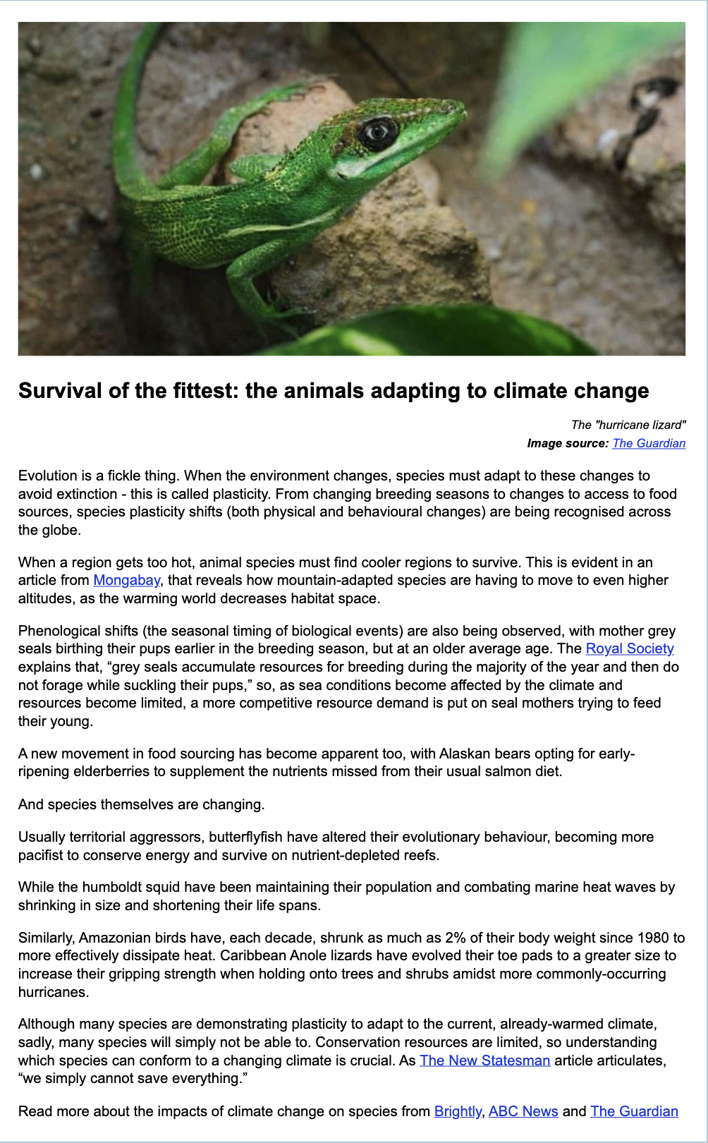 Each month, I researched and wrote about environmental news that I felt would be an educational, interesting read for our clients’ subscribers, with the aim of spreading awareness about a shared concern: animal welfare.