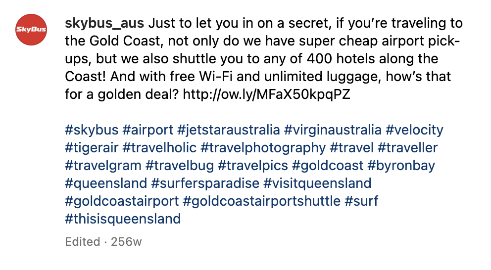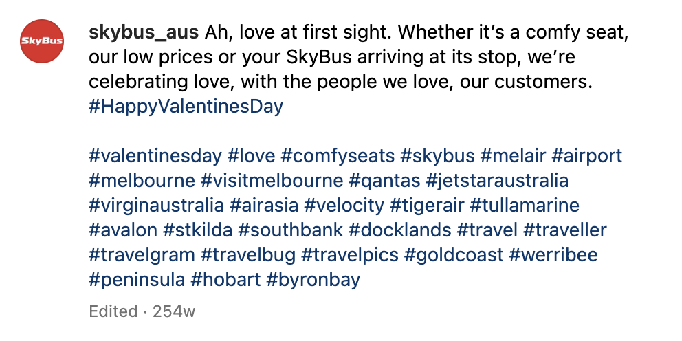 I used the content calendar to play into events on and coming up, where a SkyBus might be a handy route for our followers, covering all cities in which SkyBus operates, including the Gold Coast, Byron Bay, Hobart and Auckland, New Zealand.