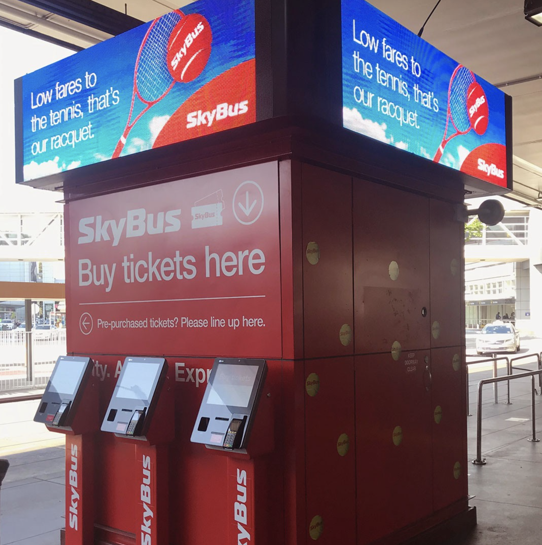 For the Australian Open, purpose-placed OOH digital billboards in Tullamarine Airport were lit up with SkyBus deals.